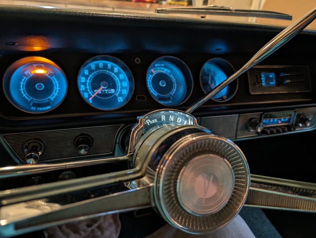 Swapping out the gauge cluster bulbs for white LEDs was a game-changer—much brighter and clearer than the original incandescent bulbs. But when it came to the colored indicator lights (red, orange, and green for the idiot lights, turn signals, and headlights), standard LED bulbs were way too intense. After some trial and error, I found the perfect solution: **1895 LED bulbs designed for pinball machines**. Yep, you read that right! These bulbs offer a softer, more diffused glow, preventing the harsh glare that standard LEDs produce. They turned out to be the ideal choice, providing the right level of brightness without overwhelming the dash.