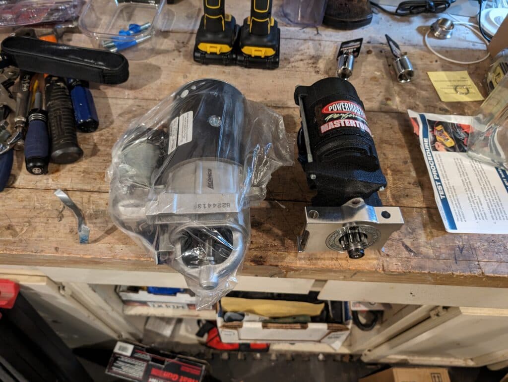 The starter had been acting up for quite some time, so I decided to replace it. I decided to go with a new, modern high-torque replacement since it was smaller, more powerful, and most importantly… lighter! The old starter weighed over 20lbs which was a bit unwieldy to work with while under the car, on your back, working over your head. Replacing the starter was fairly straightforward. It attaches via two bolts and has two power cables to attach. The most challenging part was making sure the new starter’s “teeth” were aligned properly.