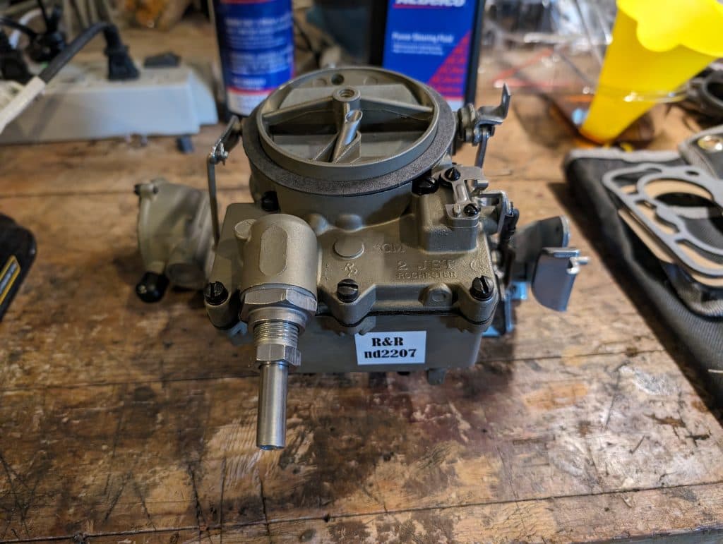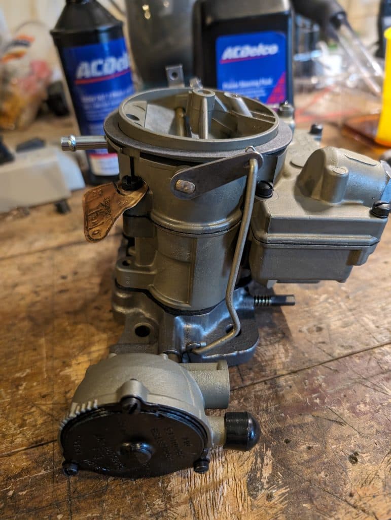 I sent the carburetor off to [National Carburetors](https://nationalcarburetors.com/) in Florida where they rebuilt it and sent it back quickly. They went the extra mile by adding the automatic choke rod that was missing. I was really impressed at how clean and new it looked upon its return.