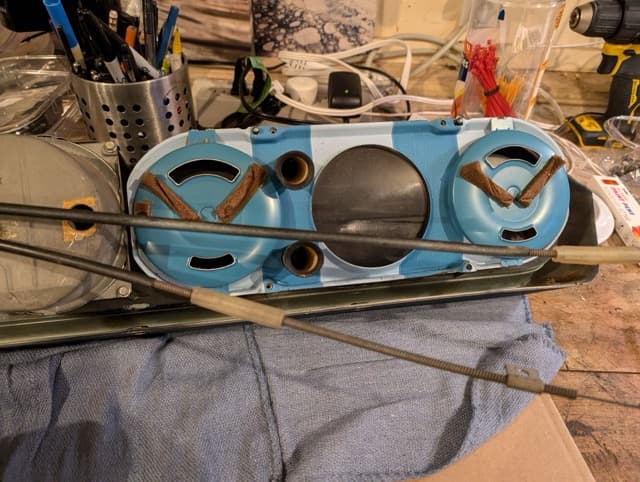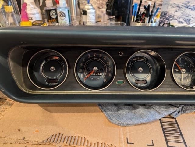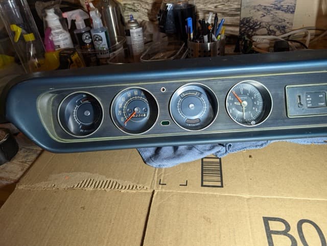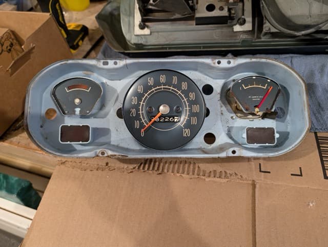 I disassembled the entire gauge cluster and carefully cleaned each component. I even managed to get the clock working—briefly! I also repainted the bright orange speedometer and gauge needle arms, giving them a fresh, factory-new look.